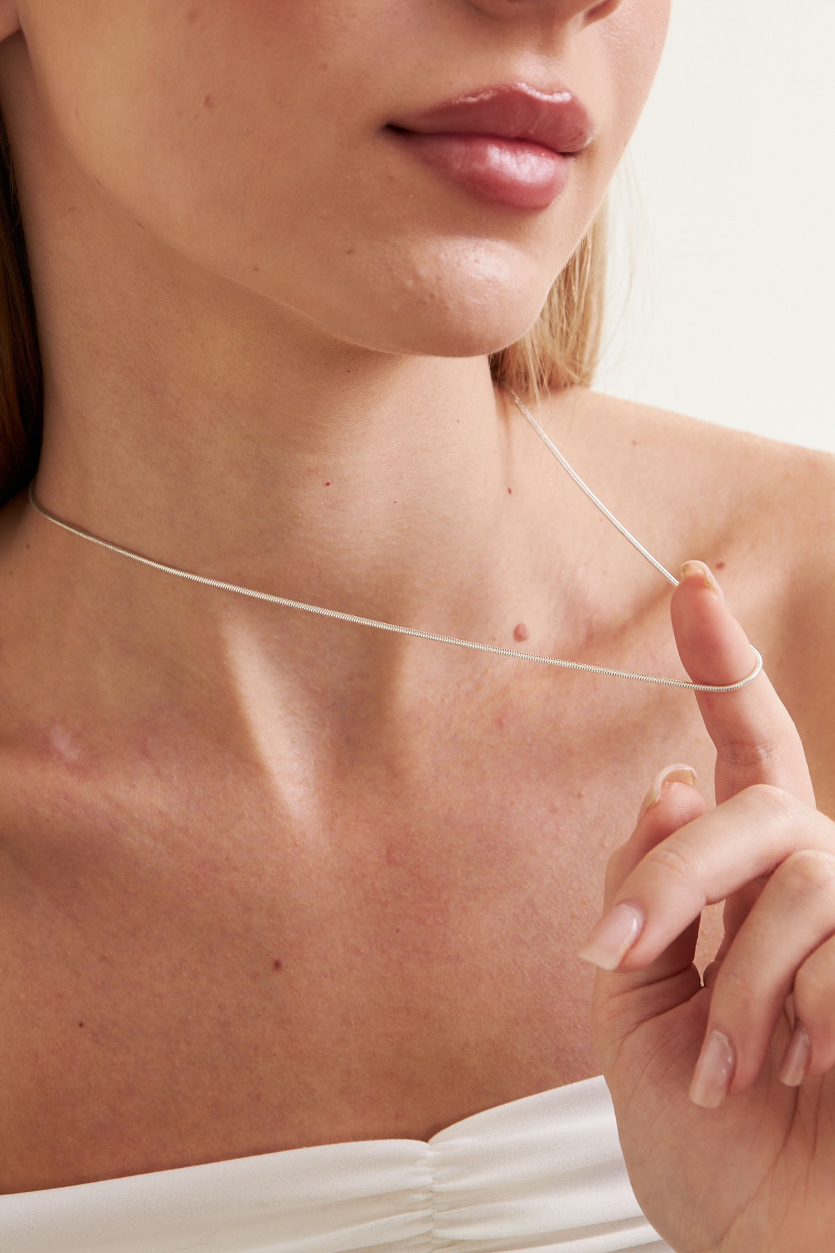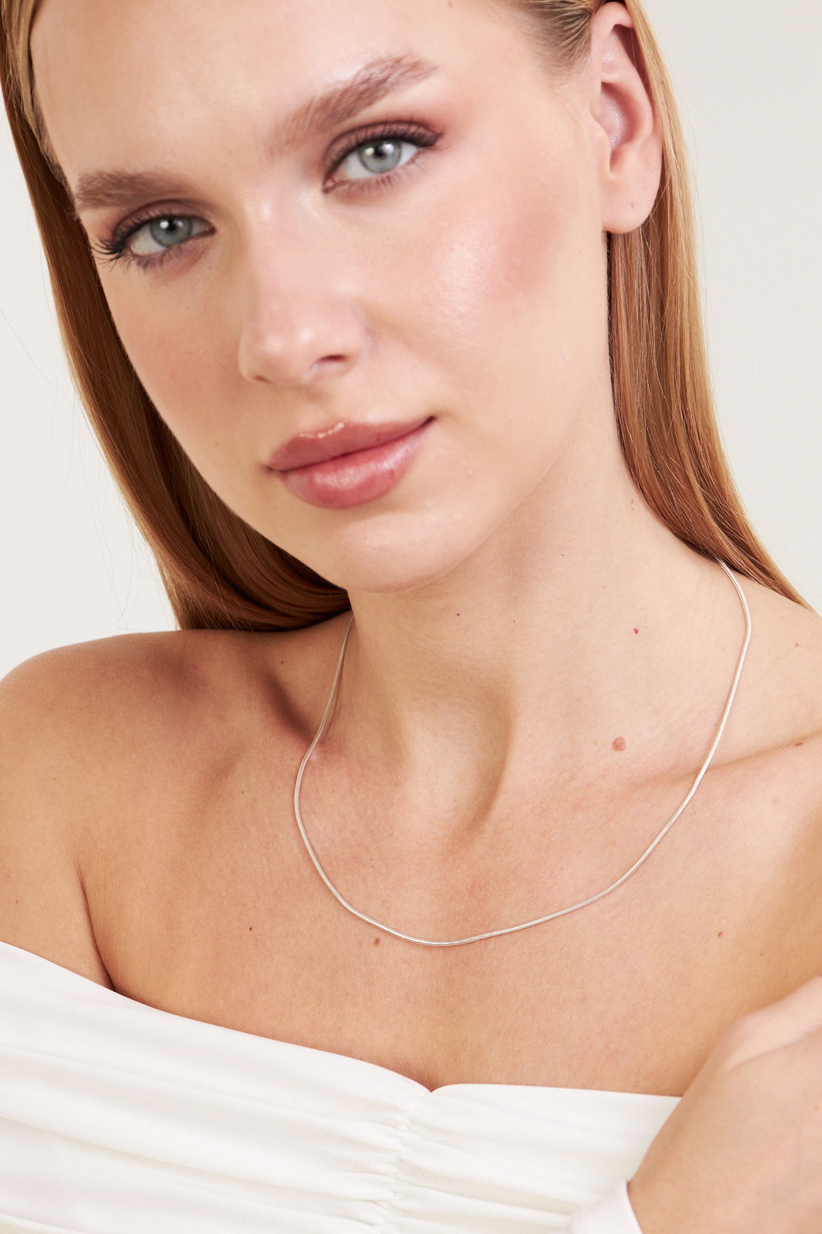 2mm Yılan 925 Ayar Gümüş Kadın Zincir Kolye VKK-4494 - Ventino