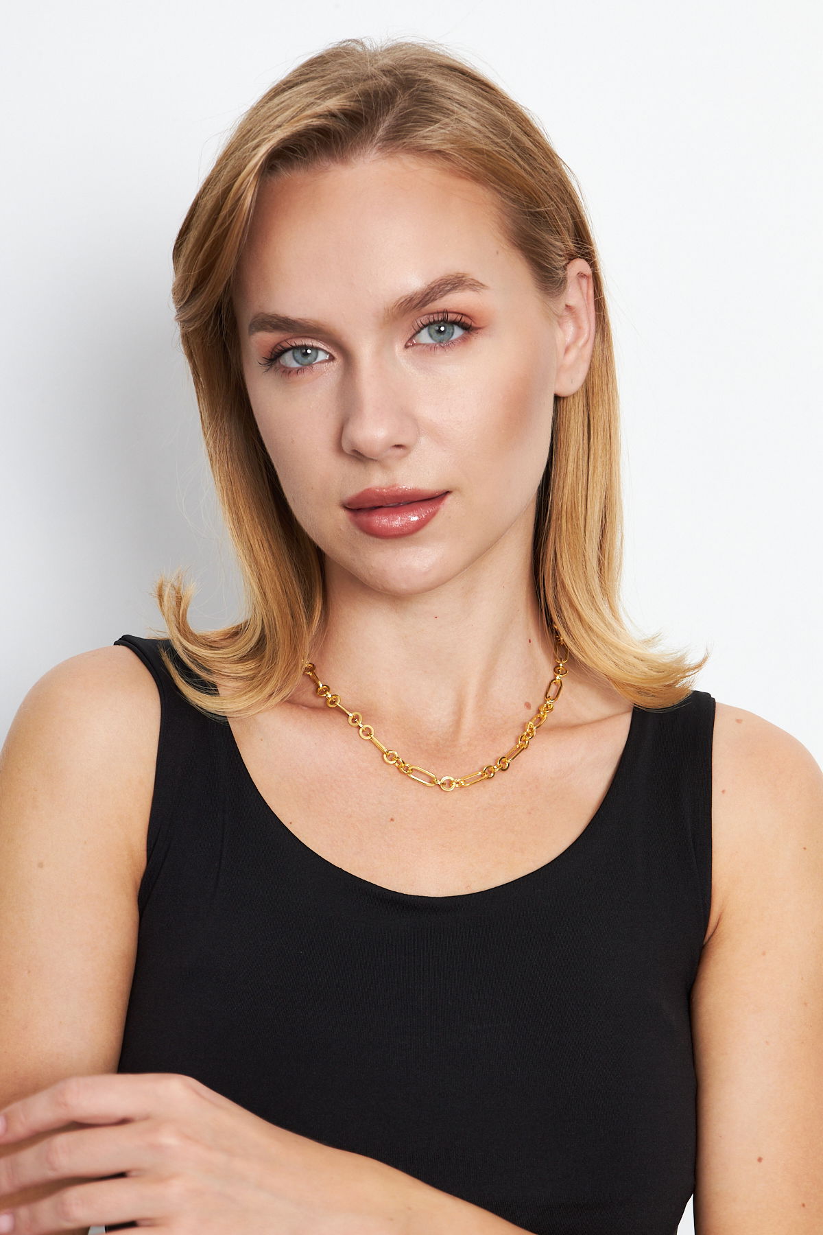 Bu özel tasarım kolye, 925 ayar gümüş ve 18K altın kaplaması ile şıklığın ve zarafetin sembolü. Yarım ataç modeliyle benzersiz bir görünüm sunan kolye, plated kaplaması sayesinde uzun süre parlaklığını korur. Her türlü kıyafetle uyum sağlayan bu zarif aksesuar, hem günlük kullanımlarınızda hem de özel anlarınızda stilinizi tamamlayacak mükemmel bir parçadır.