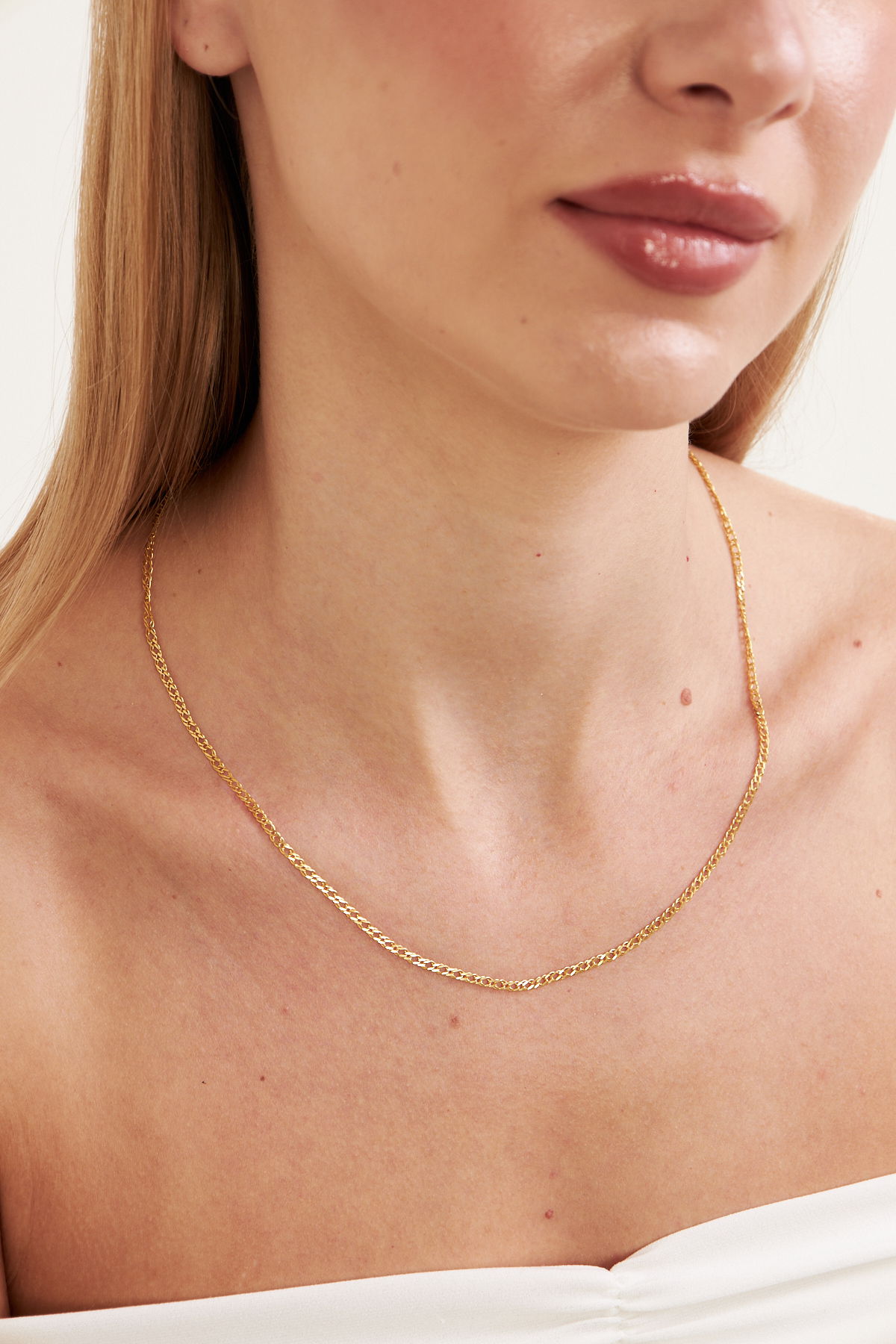 14 K Altın Kaplama Plated Italyan Yassı Zincir 925 Ayar Gümüş Kadın Kolye-made In Italy- Vkk-4444