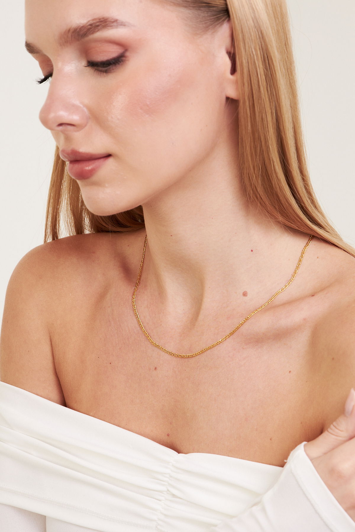 18K Altın Kaplama 3mm Figaro 925 Ayar Gümüş Kadın Zincir Kolye VKK-4497 -