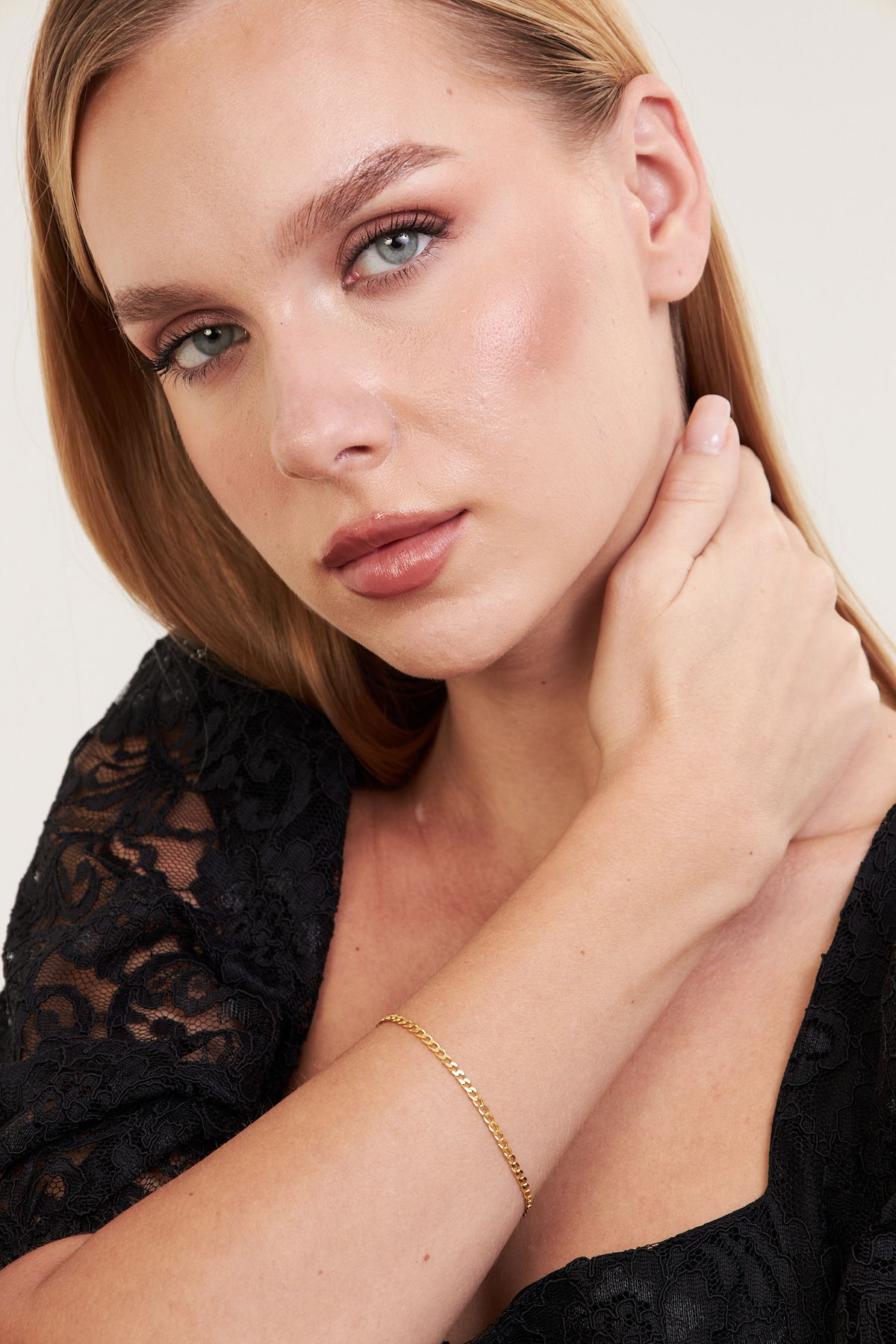 18K Altın Kaplama 3mm Gurmet 925 Ayar Gümüş Kadın Zincir Bileklik VKB-7019 - Ventino