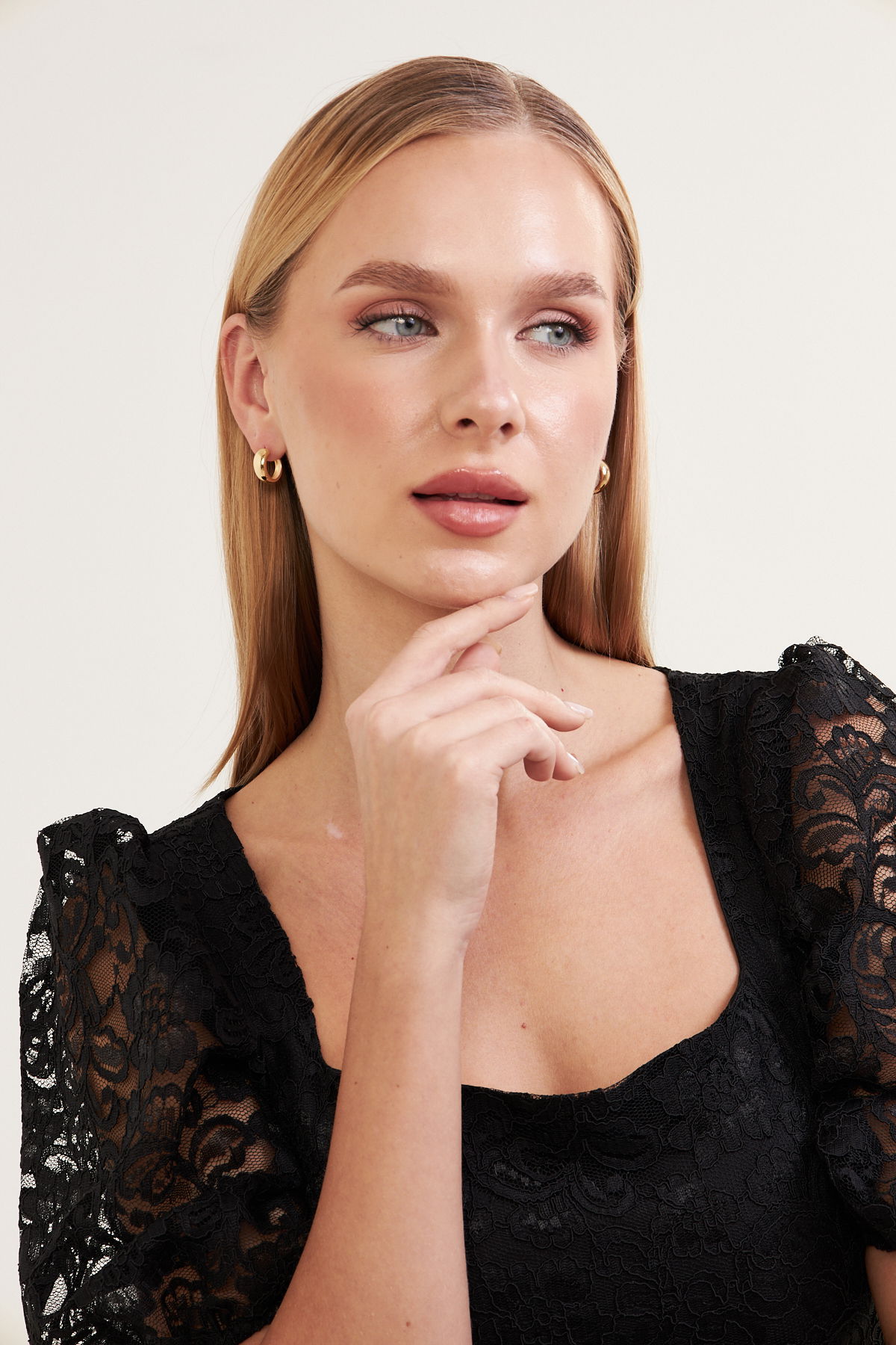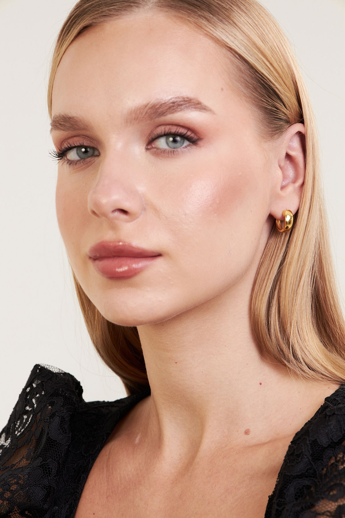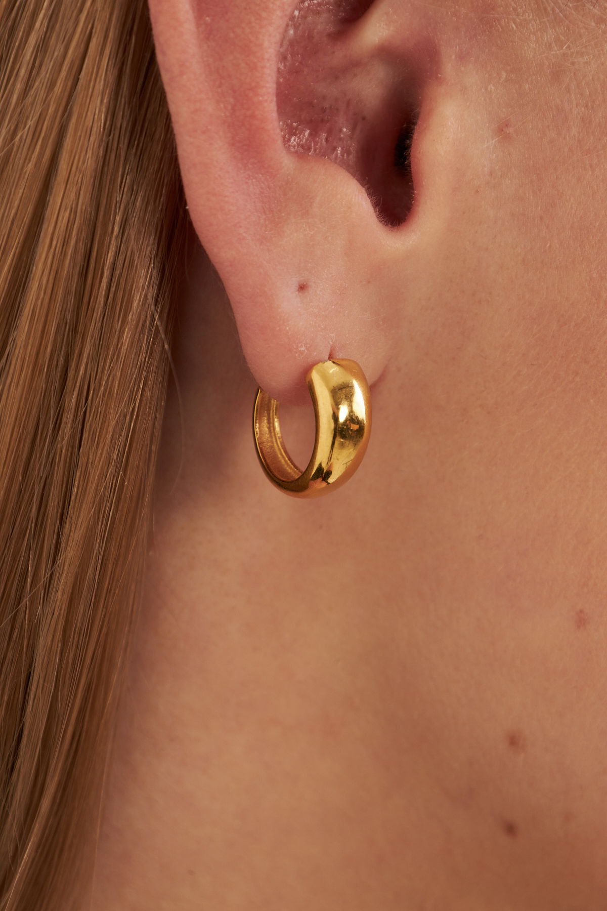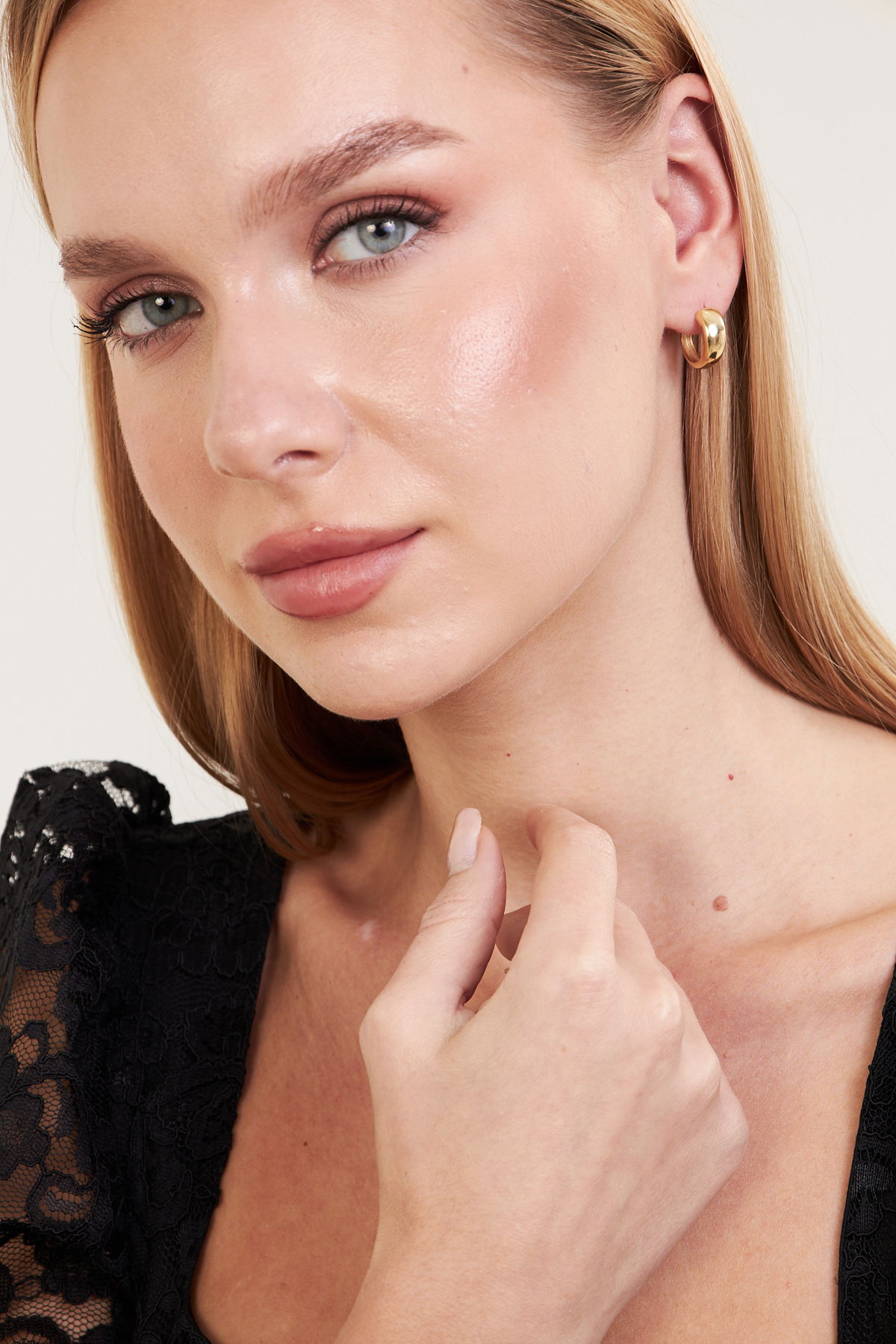18K Altın Kaplama Bombeli Yarım 925 Ayar Gümüş Halka Küpe VKP-7551 - Ventino