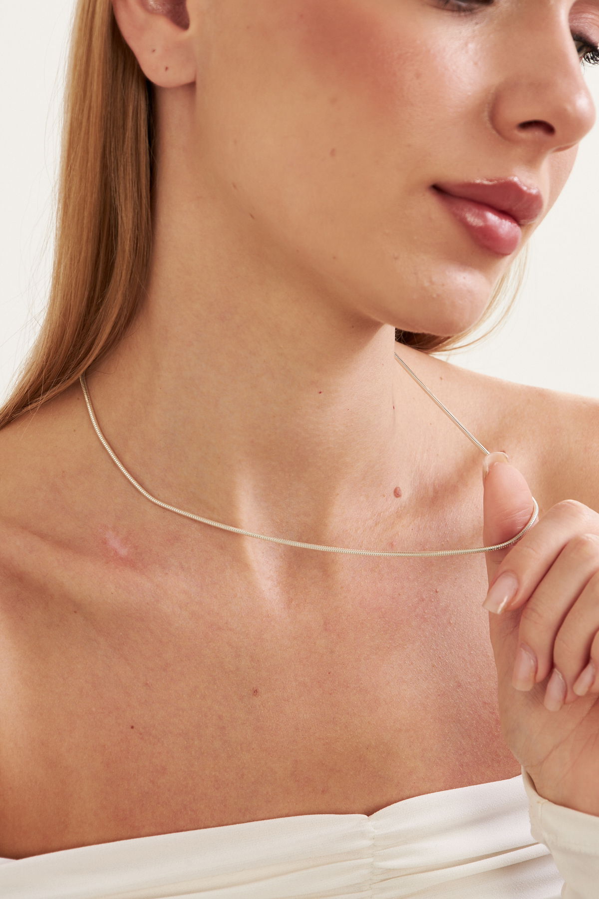 1,5mm Yılan 925 Ayar Gümüş Kadın Zincir Kolye VKK-4496 - Ventino