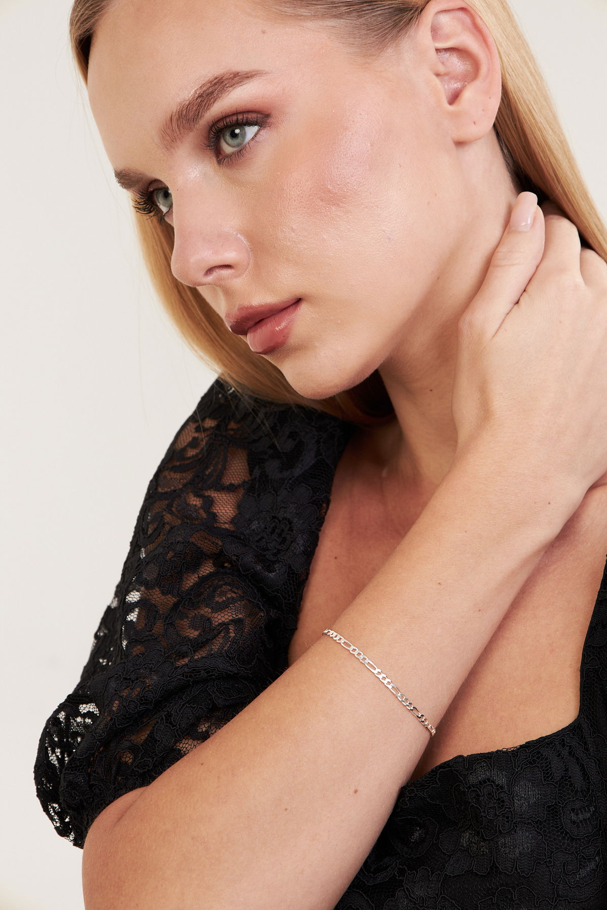3mm Figaro 925 Ayar Gümüş Kadın Zincir Bileklik VKB-7022 - Ventino