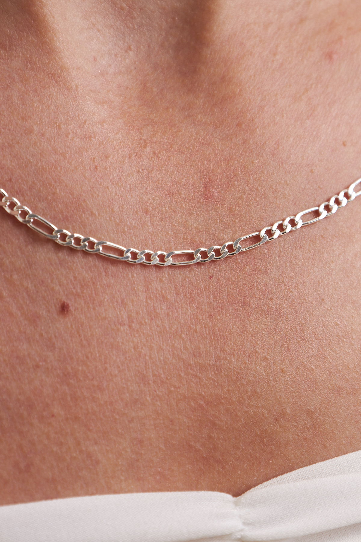 3mm Figaro 925 Ayar Gümüş Kadın Zincir Kolye VKK-4487 - Ventino