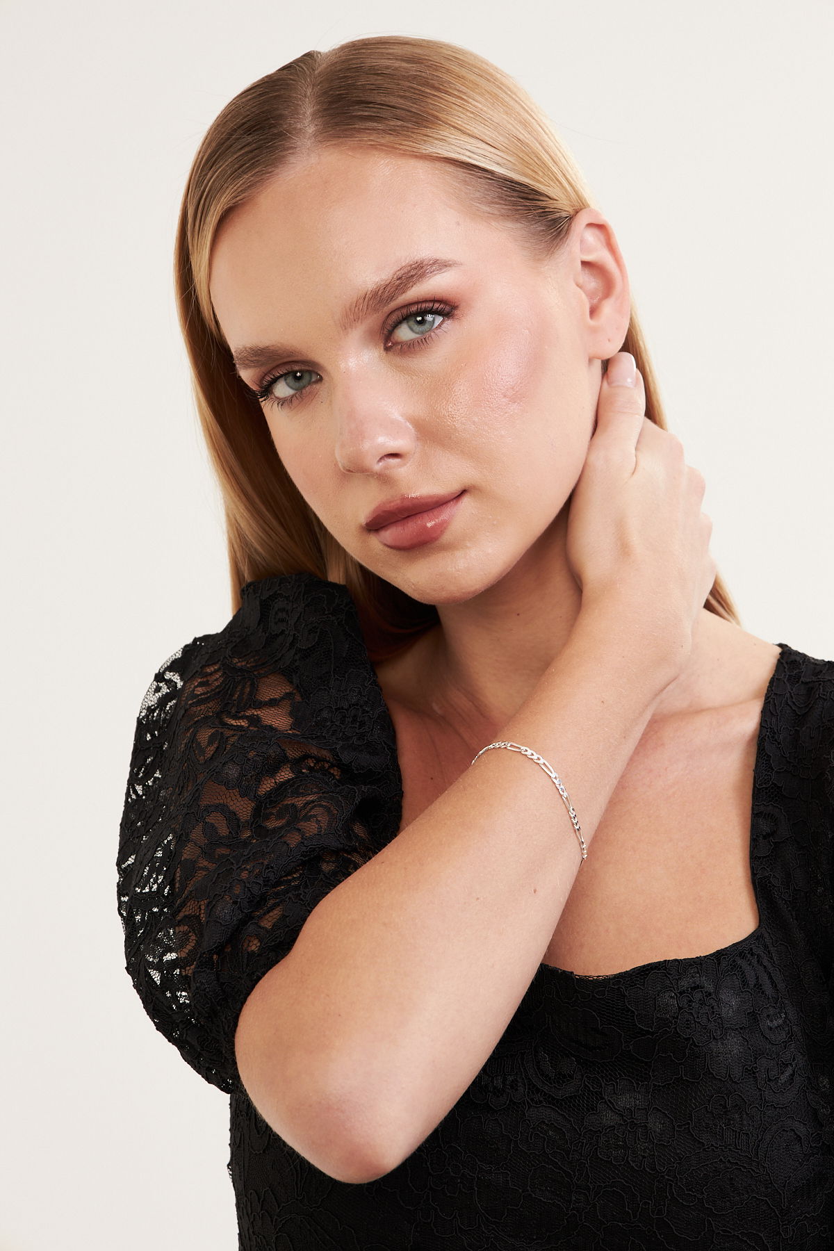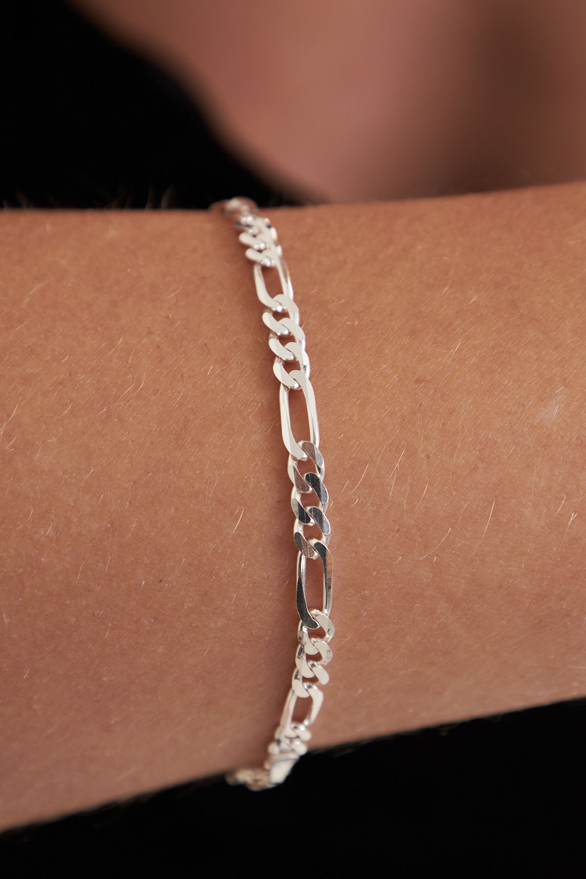 4mm Figaro 925 Ayar Gümüş Kadın Zincir Bileklik VKB-7020 - Ventino