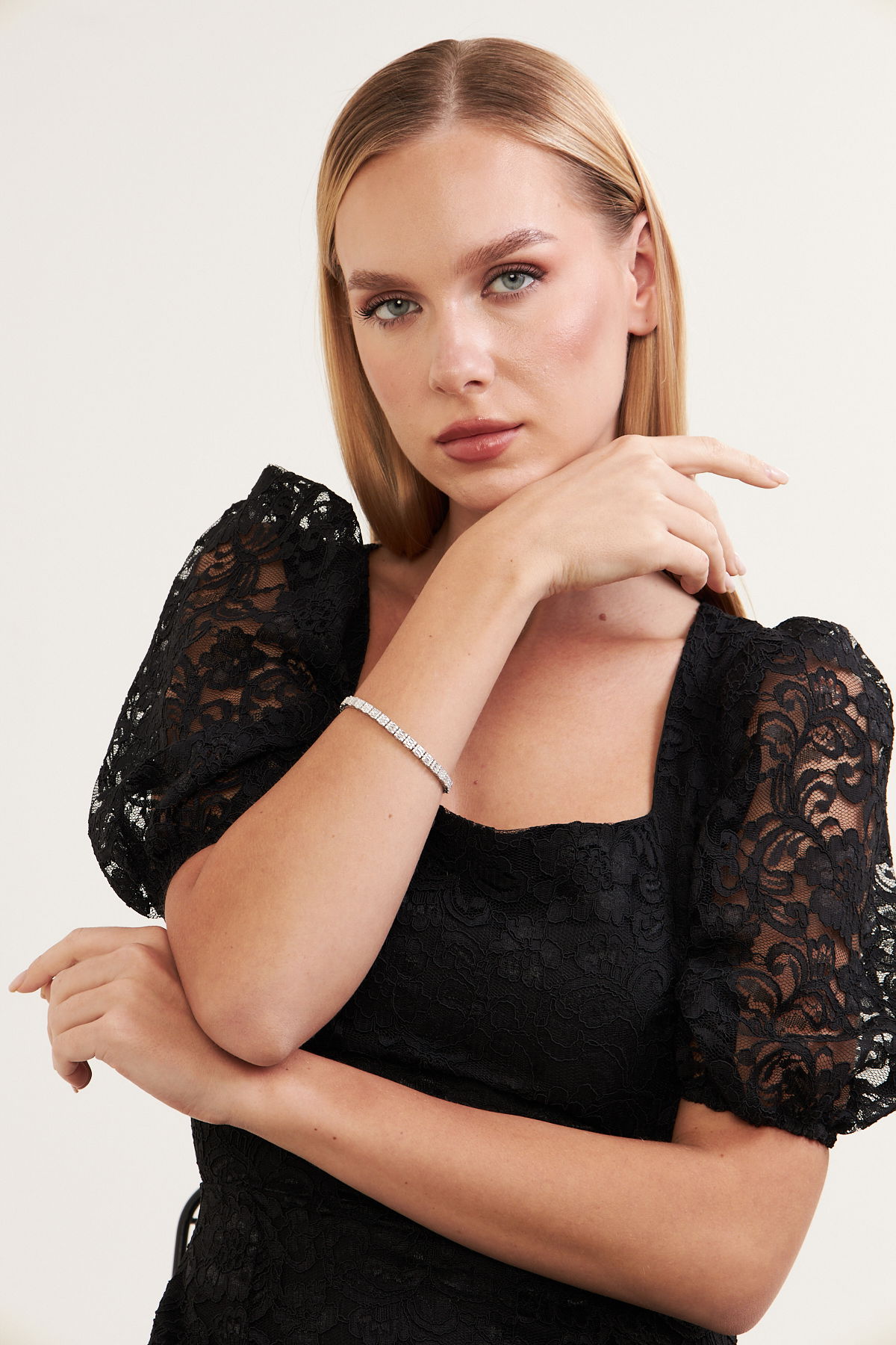 925 Ayar Gümüş Taşlı Zarif Baget Model Kadın Bileklik VKB-7017 - Ventino